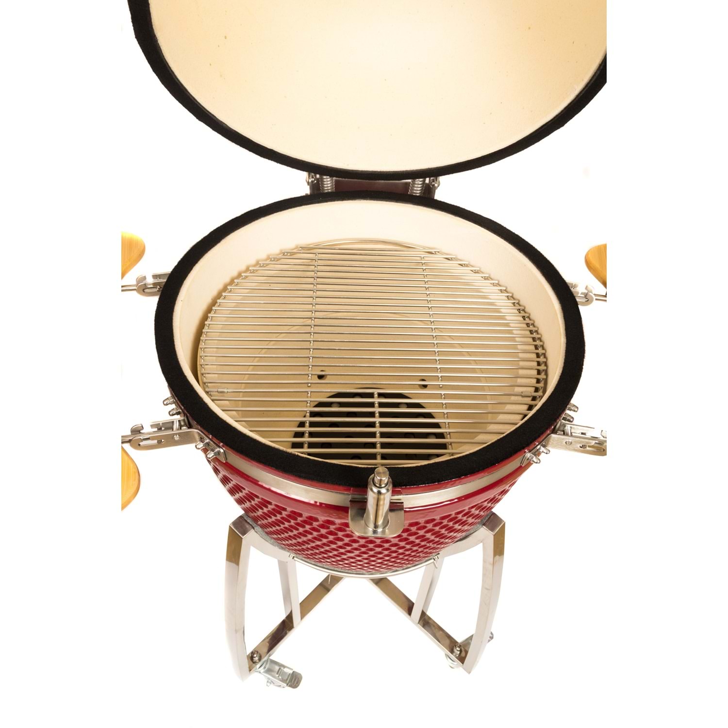RENK: KIRMIZI ANA GÖVDE ÇAP : 21 " - 55 CM PİŞİRME IZGARASI : 46.7 CM / PASLANMAZ ÇELİK IZGARA MALZEME : SERAMİK ÜST HAVALANDIRMA : DÖKÜM YÜKSEKLİK : 91 CM SERAMİK KALINLIĞI : 2.5 CM NET AĞIRLIK : 77 KG AMBALAJLI AĞIRLIK : 90 KG MONTAJLI BAYUT : 130x73x122 CM PİŞİRME PORSİYONU : 8 KİŞİ (BÜYÜK PORSİYON) - 12 KİŞİ YAN SEHBALAR BAMBU 1000 DERECEYE DAYANIKLI IZGARA TABANI VE ATEŞ ÇEMBERİ KROM - TEKERLEKLİ SEHBA DAHİL